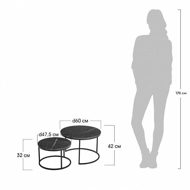 Компоненты, входящие в комплект: стол журнальный — 475×320 мм, стол журнальный — 600×420 мм