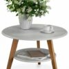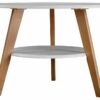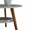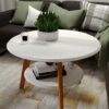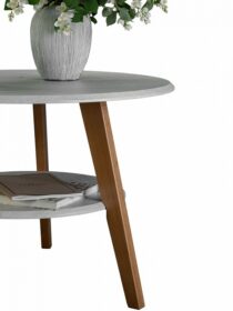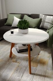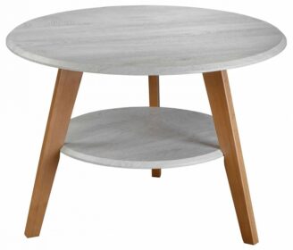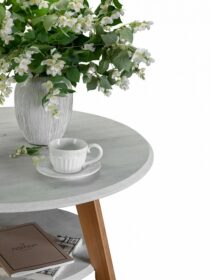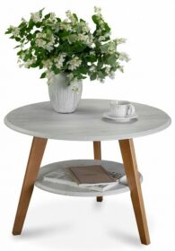 Универсальный журнальный стол с круглой столешницей и полкой великолепно впишется в интерьеры общественных помещений. Фацет по периметру столешницы и полки — дань современным тенденциям и гигиене интерьера, ножки из массива бука — классика стиля, продуманность конструкции — гарантия долгого срока службы.