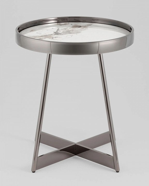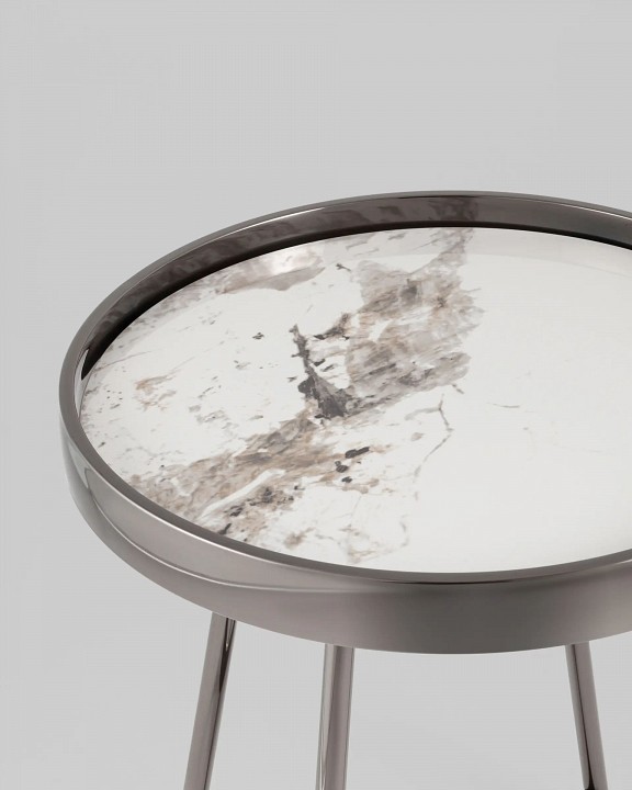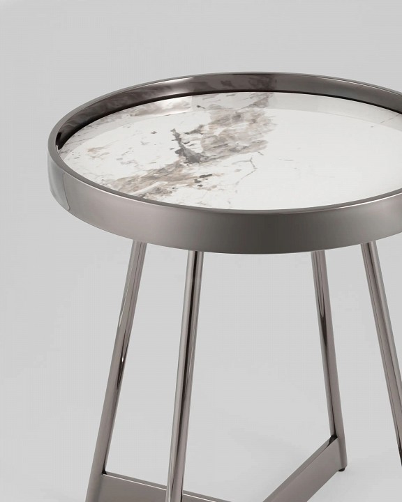 Журнальный столик – лаконичная модель в современном стиле с элементами ар-деко и неоклассики, которая благодаря своему универсальному дизайну прекрасно впишется в любой домашний или офисный интерьер и украсит собой диванную зону. Прочная конструкция столика полностью изготовлена из металла. Круглая столешница из керамики мраморного рисунка мгновенно приковывает взгляд и завораживает, создавая яркий акцент.