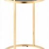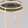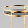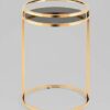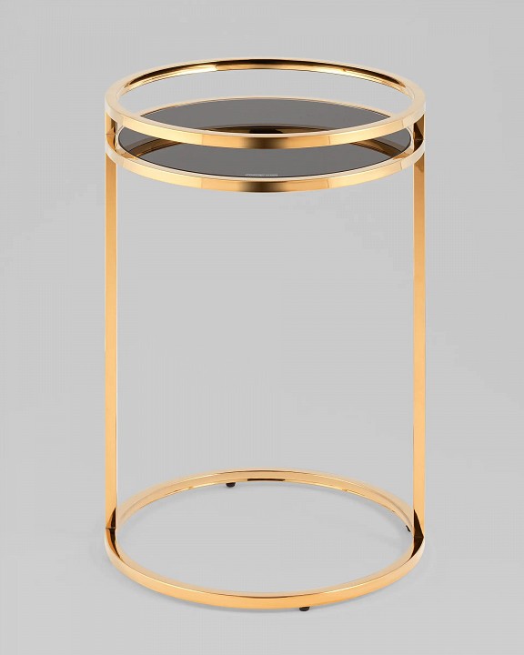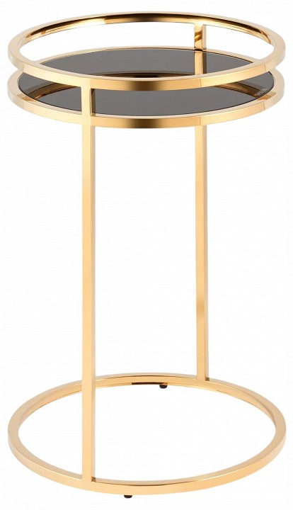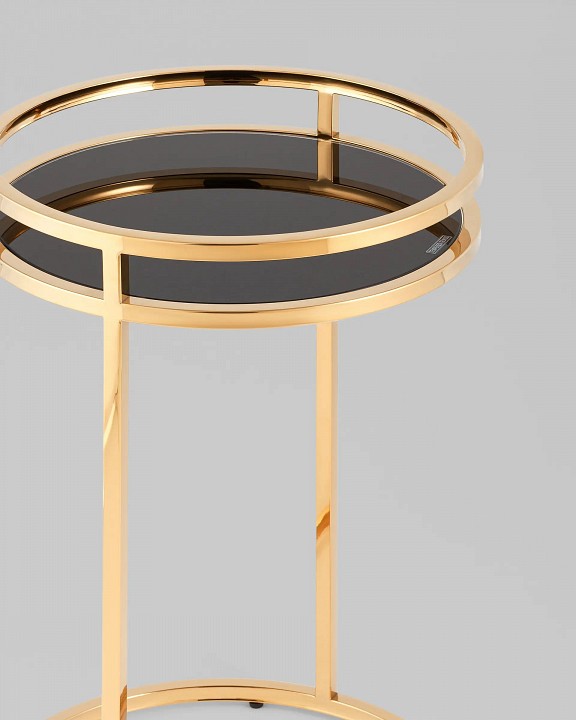 Дизайнерский журнальный столик. В качестве столешницы выступает стекло черного цвета. Основание из металла делает круглый журнальный столик по-настоящему роскошным предметом обстановки. Конструкция выглядит визуально легкой и воздушной, но при этом она устойчивая и прочная благодаря металлическому каркасу.