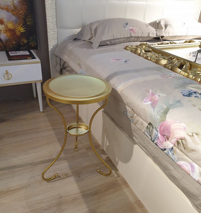 Изящный, стильный и миниатюрный журнальный столик в благородном цвете под золото добавит акцент в Ваш интерьер дома, дачи, кафе, гостиницы и остальных зон отдыха. В небольшую пластиковую чашу в основании столика удобно разместить полезные мелочи. Надежный металлический каркас и столешница окрашены порошковой краской, устойчивой к механическому воздействию. Столик легко поднять за опоры и перенести в любое место дома или офиса. Столешница легко снимается и ее можно использовать в качестве подноса, что очень удобно. Столик полностью разборный. Легко собрать и разобрать обратно.