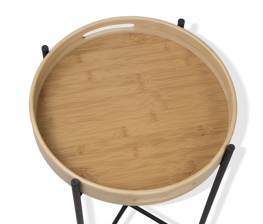Изящный и стильный журнальный стол с бамбуковой столешницей-подносом добавит комфорта в жизнь дома, на даче, в кафе, гостинице и остальных зонах отдыха. Металлический каркас и столешница окрашены порошковой краской, устойчивой к механическому воздействию. Выполнен из трубы 12 мм. Столешница-поднос выполнена из натурального бамбука. Благодаря небольшому весу столик легко поднять и перенести в любое место дома или офиса. Бамбуковый поднос с ручками – съемный. Стол полностью разборный. Легко собрать и разобрать обратно.