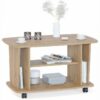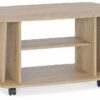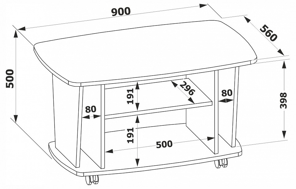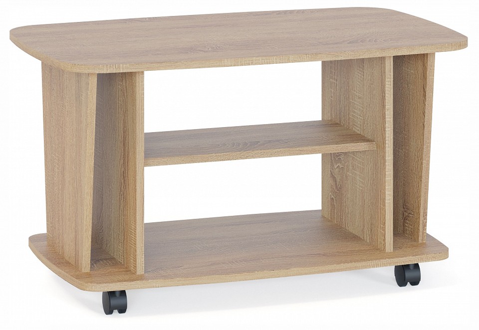 Конструкция этого компактного журнального стола разработана таким образом, что вы сможете хранить в порядке много вещей. Здесь предусмотрены две обычных полки, а также два вертикальных отсека по краям. Стол оборудован поворотными колесами, которые облегчают его перемещение по комнате. Рекомендуем сохранить инструкцию по сборке (паспорт изделия) до истечения гарантийного срока. Материал: ЛДСП 16 мм, кромка ПВХ 2 и 0.4 мм. Материал колес: пластик. Максимальная нагрузка на столешницу: 30 кг.