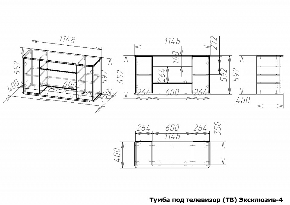 Размеры, мм: 1150x400x650