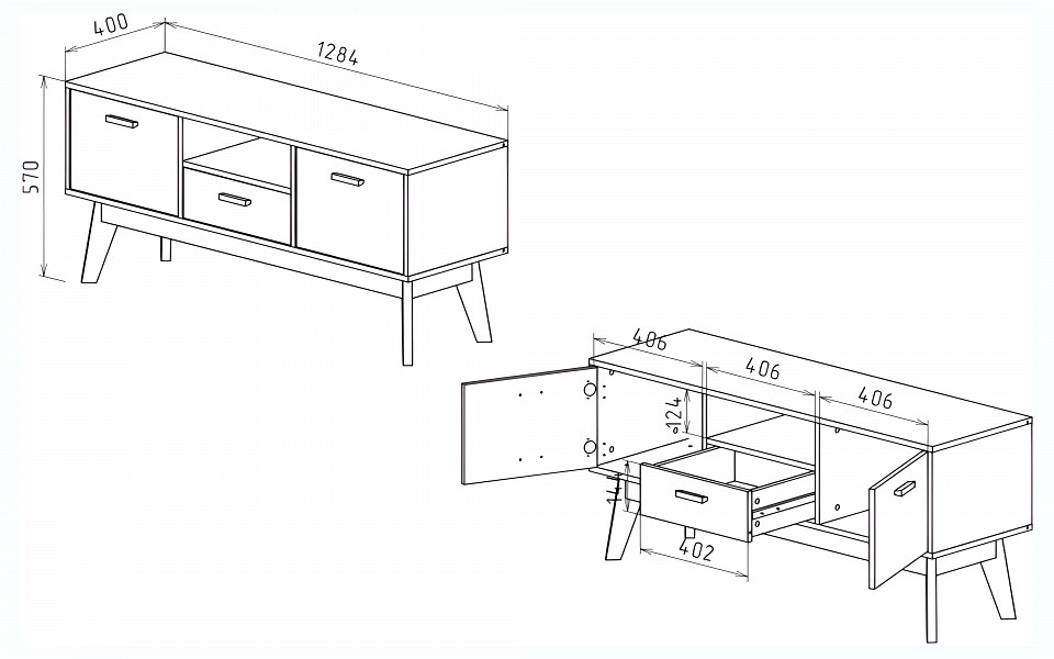 Размеры, мм: 1280x400x570