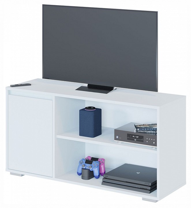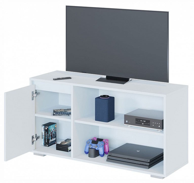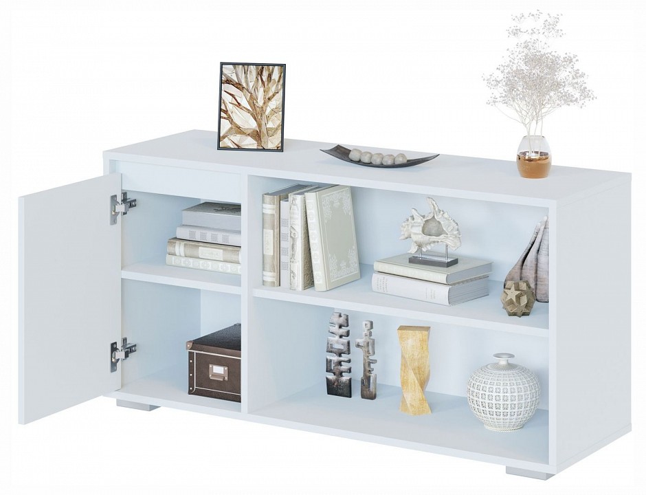 Многофункциональная тумба с двумя отделениями. Она подойдет для спальни, гостиной или прихожей. Ее можно использовать в качестве тумбы для телевизора и других мультимедийных устройств. Отличительная особенность этой тумбы — два отделения: открытое и закрытое с дверцей, которые обеспечивают максимальное использование пространства. Закрытое отделение с распашной дверцей и двумя вместительными полками — идеальное место для хранения различных предметов, которые не требуют постоянного доступа. Дверца открывается без ручек за счет зазора в верхней части фасада, что обеспечивает удобство и безопасность. Открытое отделение подойдет для размещения книг, коллекций, фотографий или декоративных аксессуаров. Несмотря на компактные габариты, тумба вместит большое количество вещей, позволит рационально использовать пространство и создавать идеальный порядок в любой комнате.
