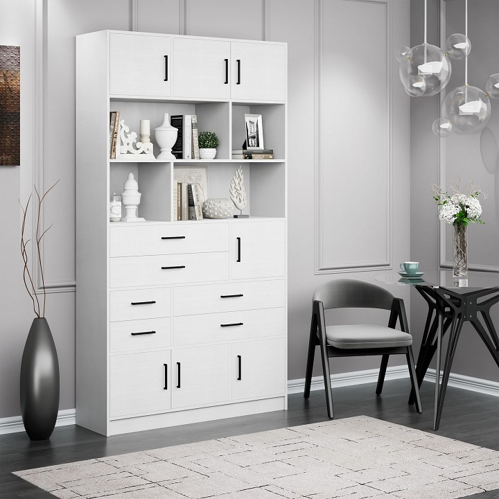 Дополнительные параметры: в выдвижных ящиках используются качественные роликовые направляющие длиной 300 мм, тип ручки: скоба, декоративные заглушки в тон мебели для скрытия технологических отверстий