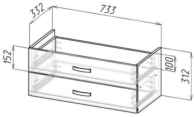 Размеры, мм: 733x332x312