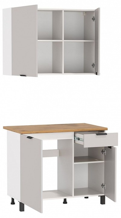 Примечание: В комплект входит: стол-тумба — 1000х600х850, тумба навесная — 1000х320х720. В комплект не входит: мойка смеситель стеновая панель (фартук) бытовая техника.