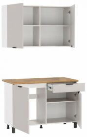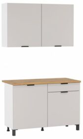 Примечание: В комплект входит: стол-тумба — 1200х600х850, тумба навесная — 1200х320х720. В комплект не входит: мойка смеситель стеновая панель (фартук) бытовая техника.