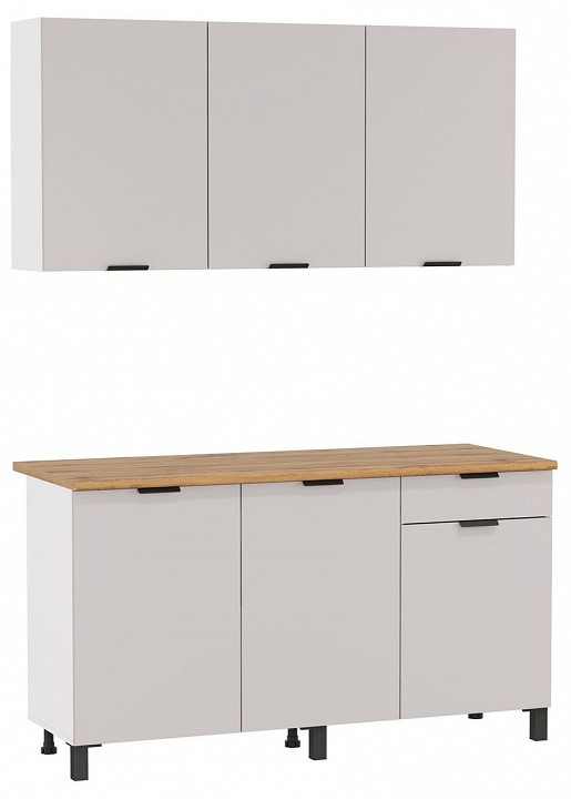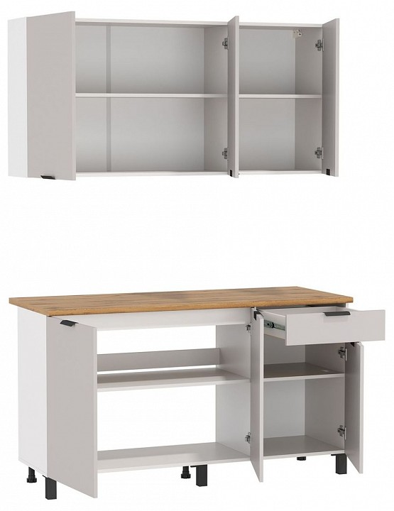 Примечание: В комплект входит: стол-тумба — 1500х600х850, тумба навесная — 1500х300х720. В комплект не входит: мойка смеситель стеновая панель (фартук) бытовая техника.