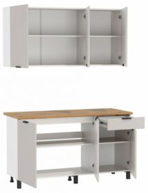 Примечание: В комплект входит: стол-тумба — 1500х600х850, тумба навесная — 1500х300х720. В комплект не входит: мойка смеситель стеновая панель (фартук) бытовая техника.