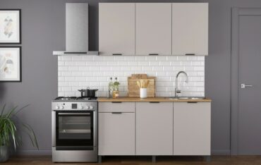 Комплект 23 Кухня ‘Венера’ (1500) (верх) — двухсекционный, распашной навесной шкаф для кухни. Широкая секция 1000мм с двумя дверцами и узкая секция шириной 500мм с одной дверцей. Внутри каждая секция разделена полкой. +Кухня ‘Венера’ (1500) (низ) — двухсекционный, распашной рабочий стол для кухни. Широкая секция 1000мм с двумя дверцами и узкая секция шириной 500мм с одной дверцей. Внутри каждая секция разделена полкой. Узкая секция дополнительно оборудована выдвижным ящиком на шариковых направляющих без доводчиков. Корпус: ЛДСП. Фасад: МДФ с ПВХ. Столешница: Постформинг 26мм. Ручки: металл. Петли: с доводчиком. Опоры: пластиковые высотой 100мм. Сборка изделия универсальная на правую и левую стороны.