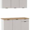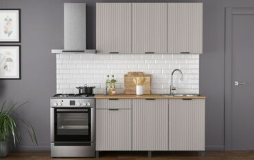 Комплект 24 Кухня ‘Венера’ (1500) (верх) — двухсекционный, распашной навесной шкаф для кухни. Широкая секция 1000мм с двумя дверцами и узкая секция шириной 500мм с одной дверцей. Внутри каждая секция разделена полкой.+Кухня ‘Венера’ (1500) (низ) — двухсекционный, распашной рабочий стол для кухни. Широкая секция 1000мм с двумя дверцами и узкая секция шириной 500мм с одной дверцей. Внутри каждая секция разделена полкой. Узкая секция дополнительно оборудована выдвижным ящиком на шариковых направляющих без доводчиков. Корпус: ЛДСП. Фасад: МДФ с ПВХ (фрезерованный). Столешница: Постформинг 26мм. Ручки: металл. Петли: с доводчиком. Опоры: пластиковые высотой 100мм. Сборка изделия универсальная на правую и левую стороны.