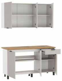 Примечание: В комплект входит: стол-тумба — 1500х600х850, тумба навесная — 1500х300х720. В комплект не входит: мойка смеситель стеновая панель (фартук) бытовая техника.