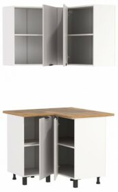 Примечание: В комплект входит: стол-тумба — 1000х1000х850, тумба навесная — 1000х1000х720. В комплект не входит: мойка смеситель стеновая панель (фартук) бытовая техника.