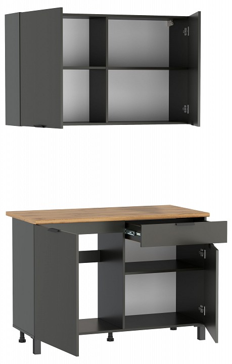 Примечание: В комплект входит: стол-тумба — 1200х600х850, тумба навесная — 1200х320х720. В комплект не входит: мойка смеситель стеновая панель (фартук) бытовая техника.
