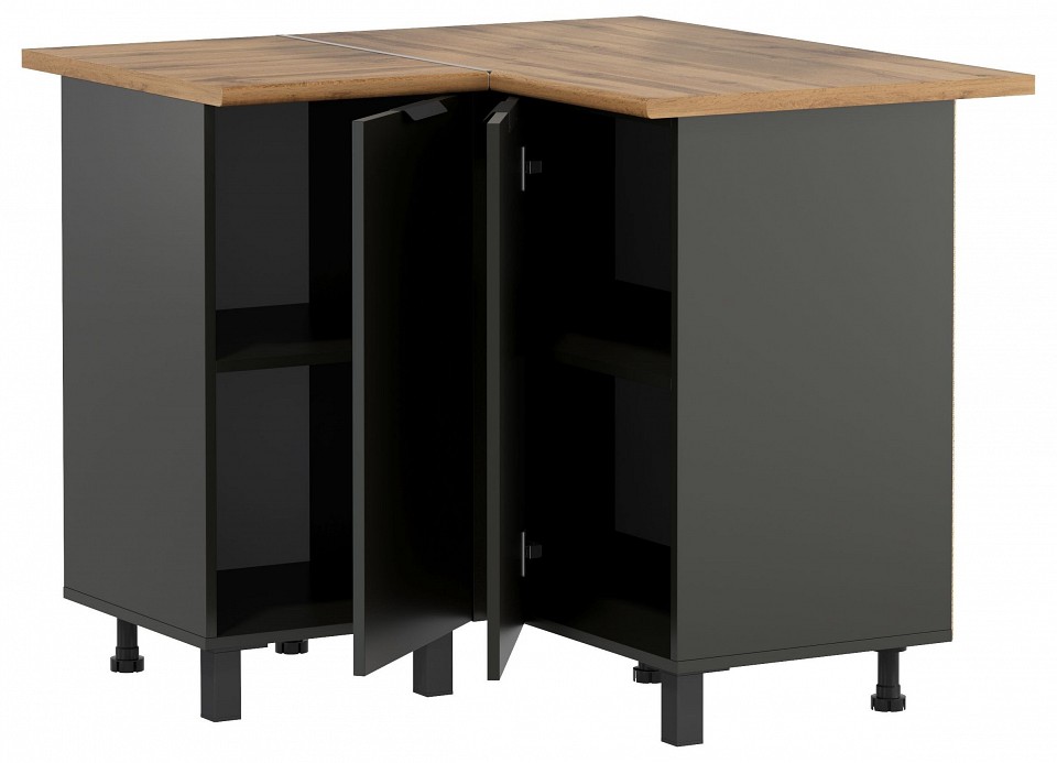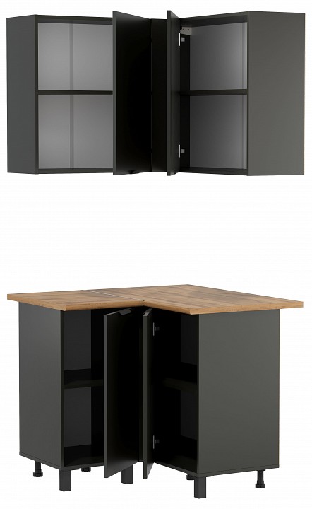 Комплект 10 Кухня ‘Венера’ угловая (верх) — двухсекционный, распашной навесной шкаф для кухни. Широкая секция 1000мм и узкая секция шириной 600мм. Внутри каждая секция разделена полкой. +Кухня ‘Венера’ угловая (низ) — двухсекционный, распашной рабочий стол для кухни. Широкая секция 1000мм под мойку или кухонную утварь. Узкая секция 400мм оборудована Внутри каждая секция разделена полкой. Корпус: ЛДСП. Фасад: ЛДСП. Столешница: Постформинг 26мм. Ручки: металл. Петли: с доводчиком. Опоры: пластиковые высотой 100мм. Сборка изделия универсальная на правую и левую стороны.