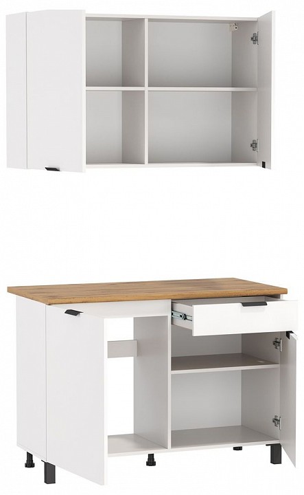 Примечание: В комплект входит: стол-тумба — 1200х600х850, тумба навесная — 1200х320х720. В комплект не входит: мойка смеситель стеновая панель (фартук) бытовая техника.