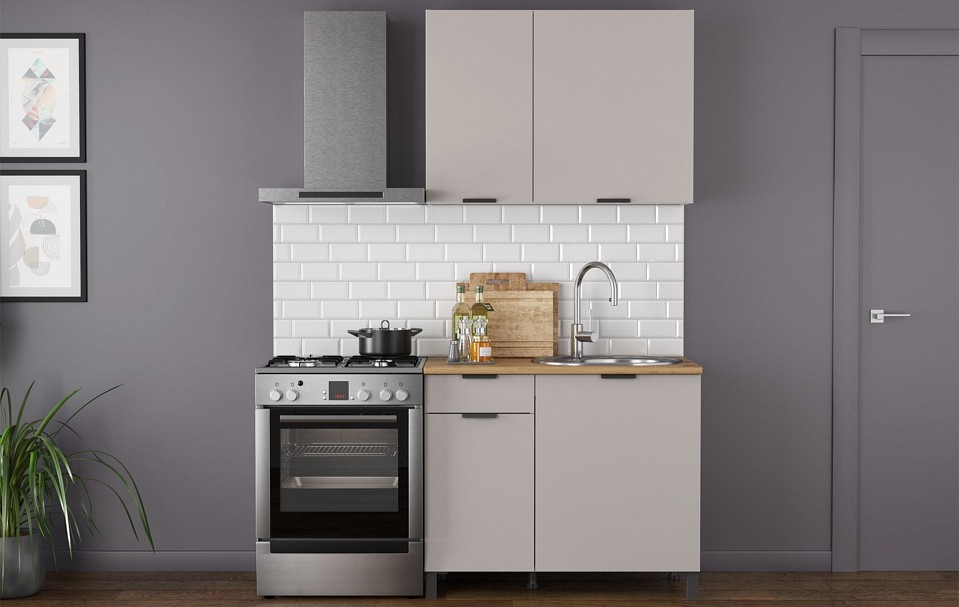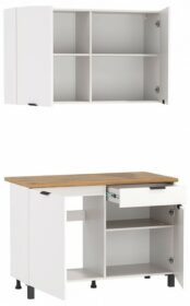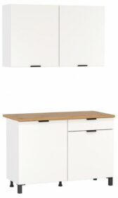 Примечание: В комплект входит: стол-тумба — 1200х600х850, тумба навесная — 1200х320х720. В комплект не входит: мойка смеситель стеновая панель (фартук) бытовая техника.