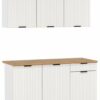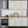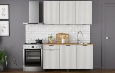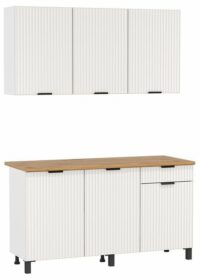 Комплект 9 Кухня ‘Венера’ (1500) (верх) — двухсекционный, распашной навесной шкаф для кухни. Широкая секция 1000мм с двумя дверцами и узкая секция шириной 500мм с одной дверцей. Внутри каждая секция разделена полкой.+Кухня ‘Венера’ (1500) (низ) — двухсекционный, распашной рабочий стол для кухни. Широкая секция 1000мм с двумя дверцами и узкая секция шириной 500мм с одной дверцей. Внутри каждая секция разделена полкой. Узкая секция дополнительно оборудована выдвижным ящиком на шариковых направляющих без доводчиков. Корпус: ЛДСП. Фасад: МДФ с ПВХ (фрезерованный). Столешница: Постформинг 26мм. Ручки: металл. Петли: с доводчиком. Опоры: пластиковые высотой 100мм. Сборка изделия универсальная на правую и левую стороны.