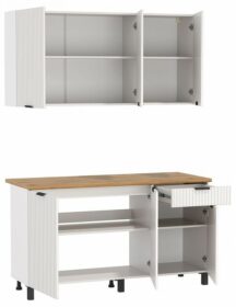 Примечание: В комплект входит: стол-тумба — 1500х600х850, тумба навесная — 1500х300х720. В комплект не входит: мойка смеситель стеновая панель (фартук) бытовая техника.