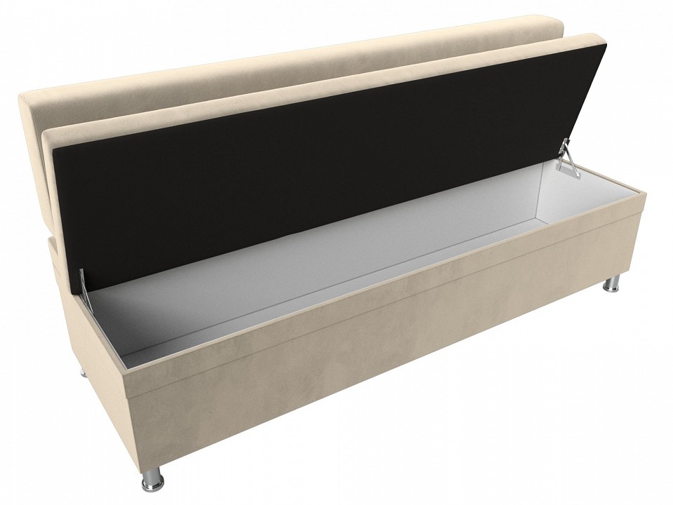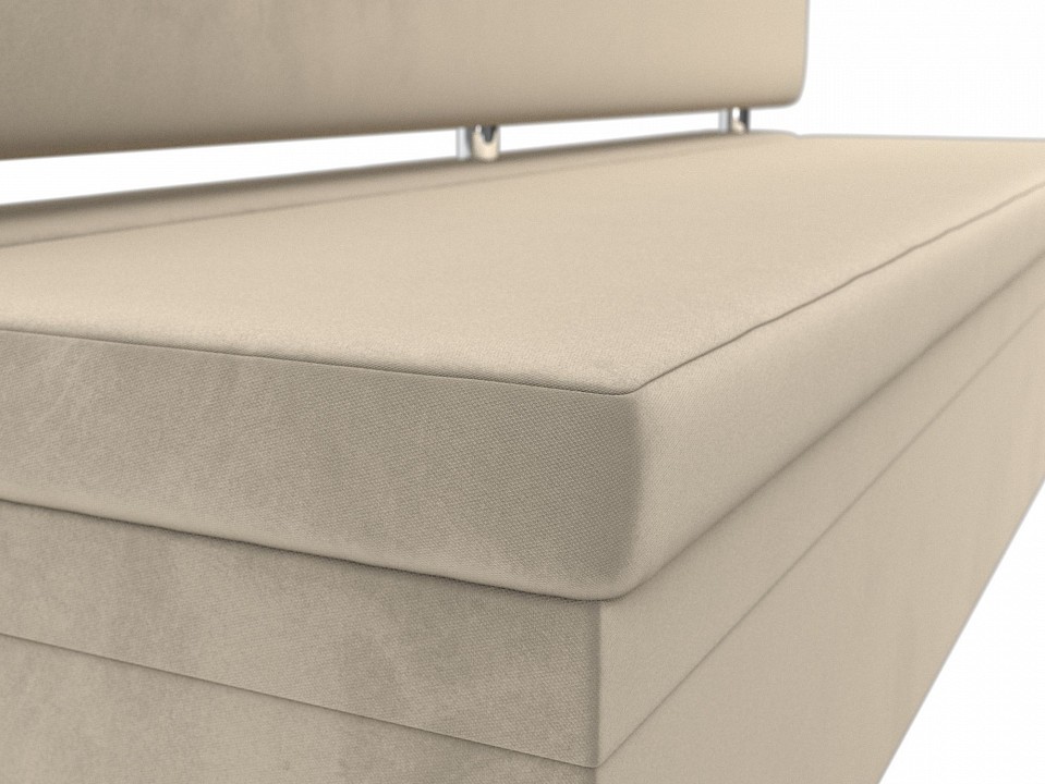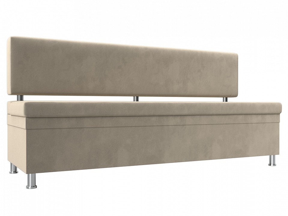 Стайл – прямой кухонный диван с ящиком для хранения продуктов и домашней утвари. Он надежно стоит на высоких ножках. Спинка модели крепится к основанию при помощи металлических труб. Под сиденьем расположена ниша для хранения вещей. Конструкции придают устойчивость и надежность металлические крепкие ножки.