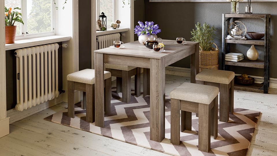 Компоненты, входящие в комплект: стол — 1104х704х750 мм 4 табурета — 330х330х470 мм