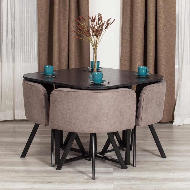 Комплект QUADRON из коллекции MODERN это идеальное решение для тех, кто хочет добавить в свой интерьер стиль и элегантность, при этом сохраняя простоту и функциональность. Благодаря своему лаконичному дизайну, он прекрасно впишется как в кухонное, так и в гостевое пространство, создавая гармонию и уют. Стол, выполненный из МДФ, обеспечивает легкость в уходе и стойкость к воздействию жидкостей и высоких температур. Это особенно важно для столов, которые используются ежедневно. Металлические ножки придают конструкции стабильность и современный вид, а отсутствие острых углов делает его безопасным для детей и домашних животных. Размеры стола, позволяющие разместить до четырех человек, способствуют комфортному общению и наслаждению еду в кругу близких. Стулья, оформленные в стиле минимализма, выделяются не только своим внешним видом, но и качеством. Мягкая обивка создает уютную атмосферу, а современная цветовая гамма делает комплект универсальным для разных интерьеров от классического до современного. Элегантность и практичность вот ключевые преимущества комплекта QUADRON. Он не только украсит ваш дом, но и станет надежным местом для общения и встреч с любимыми. Это идеальный выбор для тех, кто ценит стиль, комфорт и долговечность в мебели.