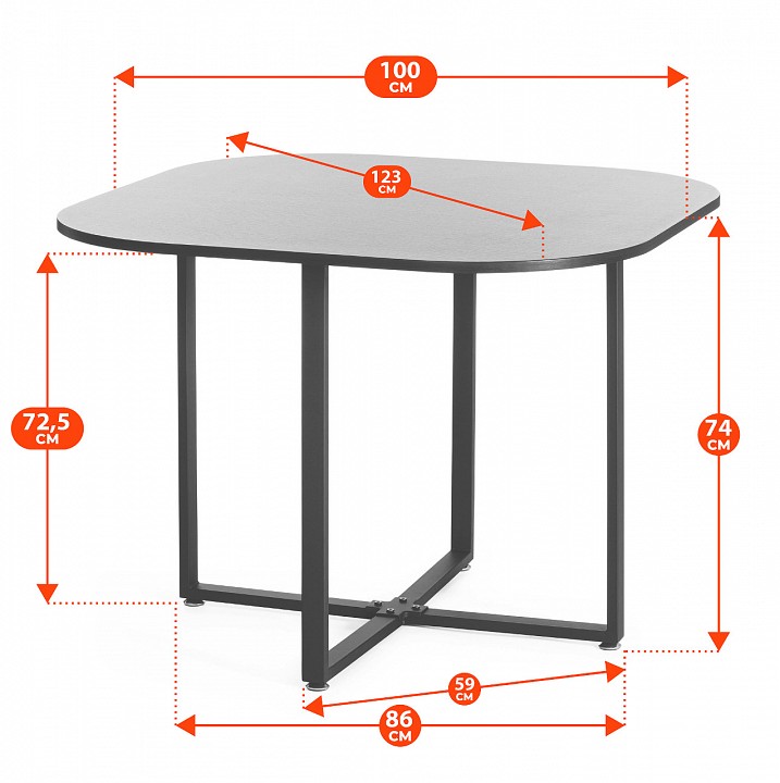 Компоненты, входящие в комплект: стол — 1000x1000x730 мм 4 стула — 690х560х710 мм