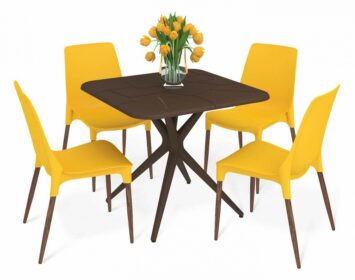 Компоненты, входящие в комплект: 1 стол обеденный — 835×835х735 мм, 4 стула — 440x570x730 мм