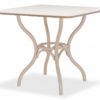 Хороший вариант для небольшой кухни. Квадратная столешница при необходимости даёт возможность состыковать несколько столов или вписать его в угол комнаты.