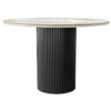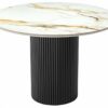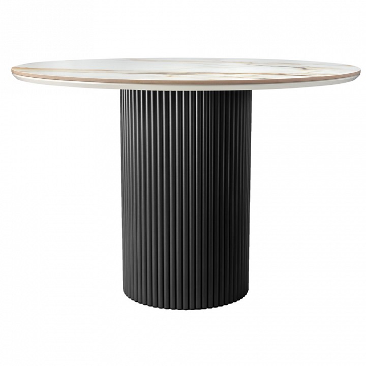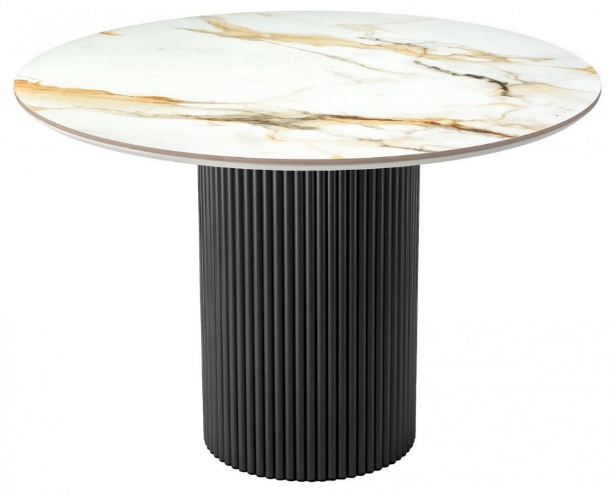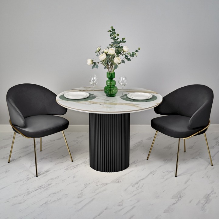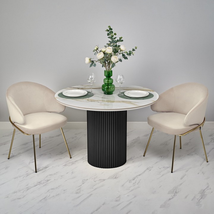 Стильный нераздвижной стол Aura – идеальное сочетание элегантности и функциональности. Стол Aura обладает глянцевой премиальной круглой столешницей из керамики, имитирующей белый мрамор, диаметром 110 см. Высококачественная керамическая столешница: поверхность стола не царапается, не впитывает жидкость и легко моется, что обеспечивает долгий срок службы и минимальный уход. Устойчивость к перепадам температур: идеально подходит для использования в любых условиях, не теряя своего великолепного вида. Роскошный дизайн: кристально-белый фон столешницы с элегантными серыми прожилками и изысканными золотистыми деталями добавляет нотку роскоши и утонченности интерьеру. Элегантная круглая опора: металлическая основа черного цвета придает столу стабильность и стильный современный вид, идеально гармонируя с мраморной столешницей. Стол Aura – это воплощение утонченного стиля и непревзойденного качества, которое украсит любой интерьер и станет любимым местом для встреч и общения. Подчеркните уникальность вашего дома с помощью стола Aura.