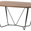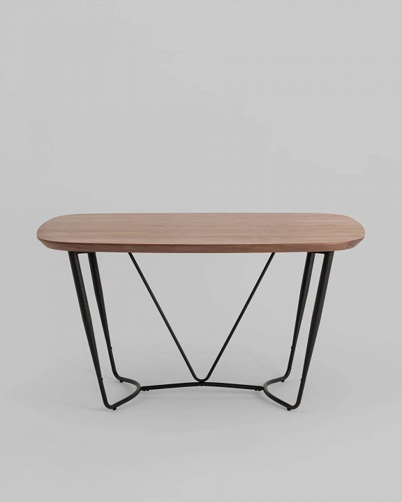 Стильный обеденный стол. Прямоугольная столешница с закругленными углами выполнена из МДФ и покрыта шпоном цвета дуба. Придает столу сдержанный вид, создает ощущение уюта и тепла. Металлический каркас в черно-золотом цвете гармонично сочетается со столешницей. Выдерживает нагрузку до 100 кг, основание оснащено подпятниками для предотвращения порчи напольного покрытия. Стол дополнит любой современный интерьер кухни или зала.