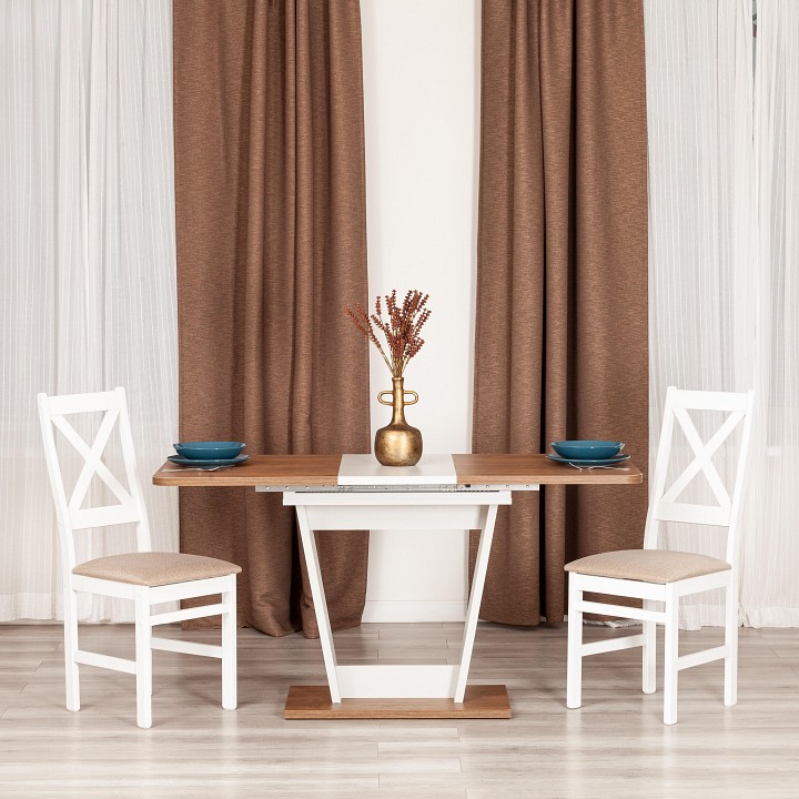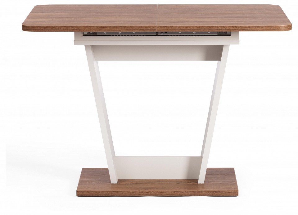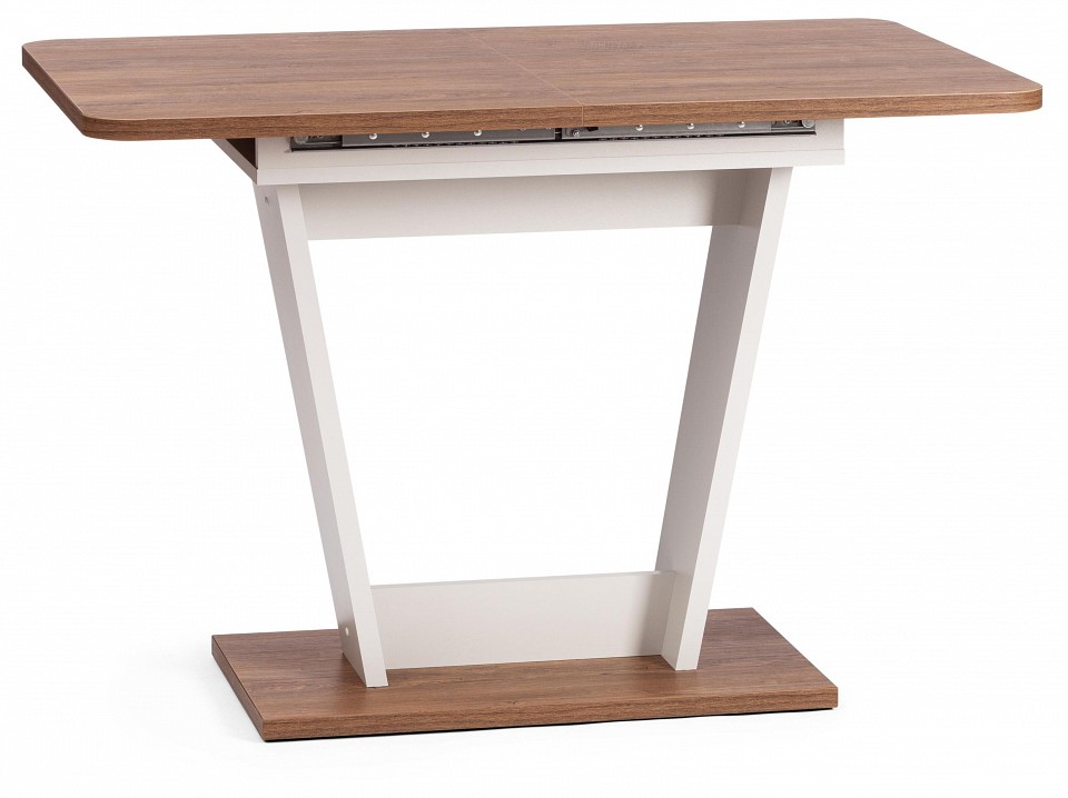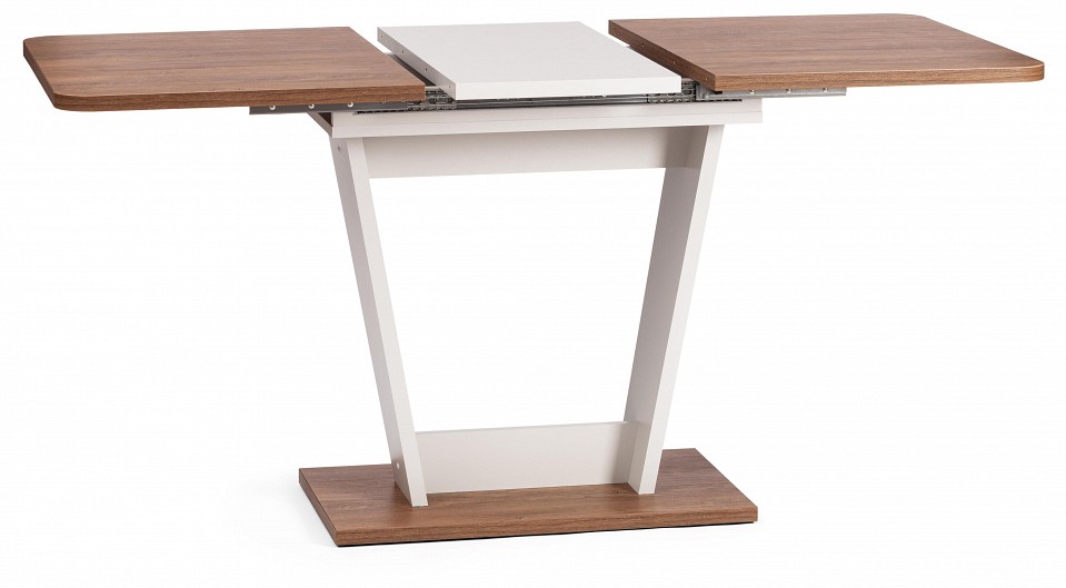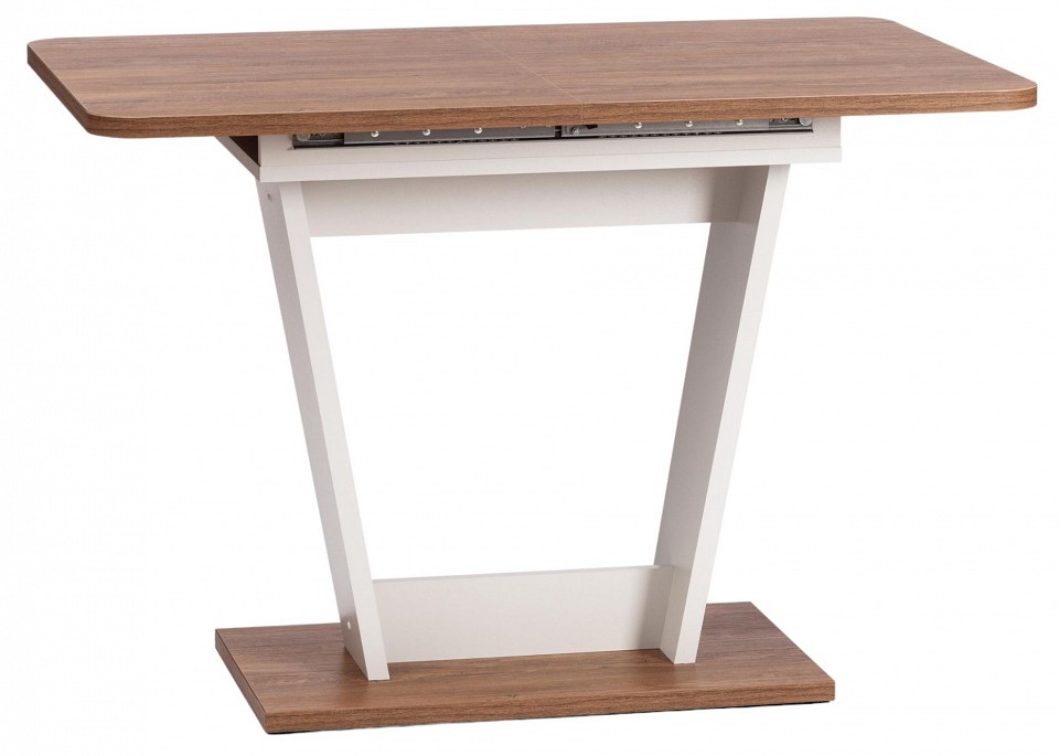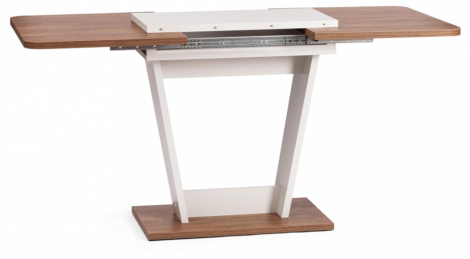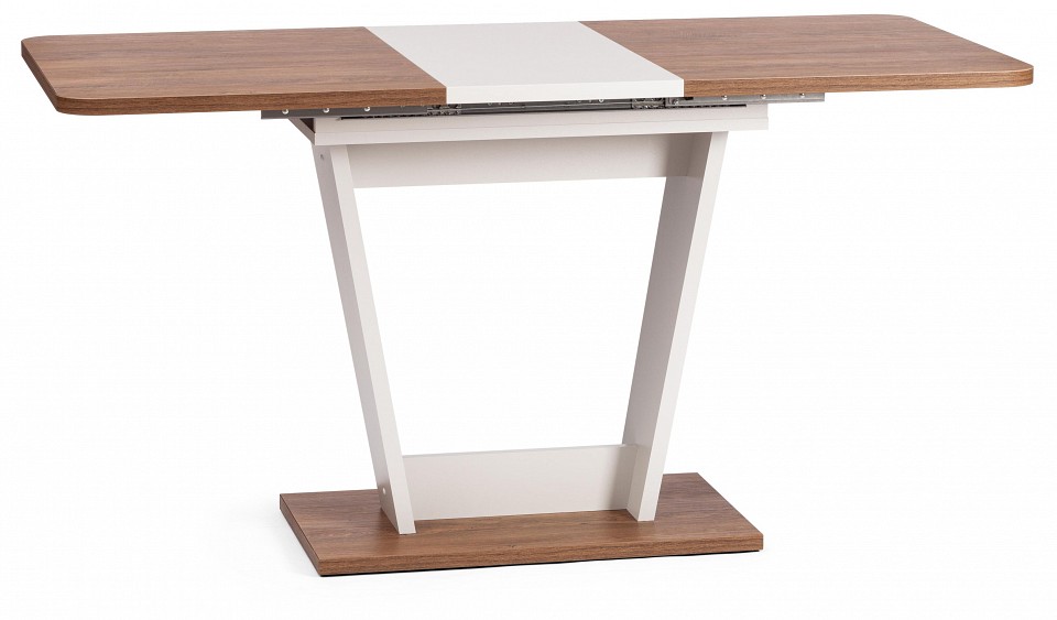 Визуально легкий стол-транформер Fox украсит собой любую домашнюю обстановку.Большая столешница, оригинальная ножка-опора и удачное сочетание цветов дуба артисан и графита – идеальное решение для современного стильного интерьера. Размеры стола дают возможность с комфортом разместить от четырех до шести человек. Вставка стола убирается горизонтально в подстолье. Края оклеены прочной пластиковой кромкой толщиной 2 мм. ЛДСП толщиной 25 мм. Механизм раздвижения — синхронного типа со стопором. Стол отлично подойдёт для гостиной, для кухни или для загородного дома.