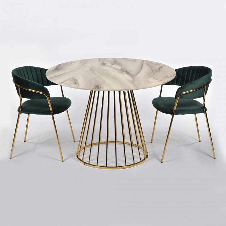 Обеденный стол со столешницей, выполненной в роскошном цвете, и золотистыми ножками идеально впишется в любой современный интерьер. Этот незаменимый и функциональный предмет мебели придется по вкусу не только людям творческим, поклонникам ультрамодных стилей винтаж или лофт, но и более сдержанным натурам, предпочитающим лаконичность и минимализм. Материал, из которого произведена столешница, полностью натурален и не содержит смол. Для его создания используются природные керамические материалы, которые затем соединяются друг с другом при сильном нагревании и давлении, что представляет собой естественный природный процесс, ускоренный с помощью современных технологий. Обеденный стол имеет удобную высоту и способен выдерживать нагрузку до 100 кг.