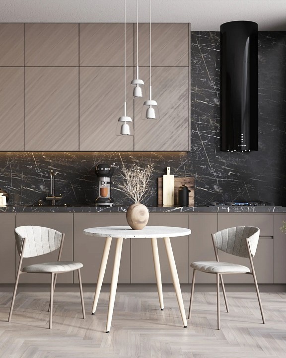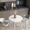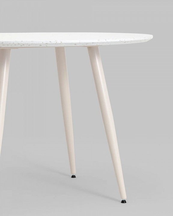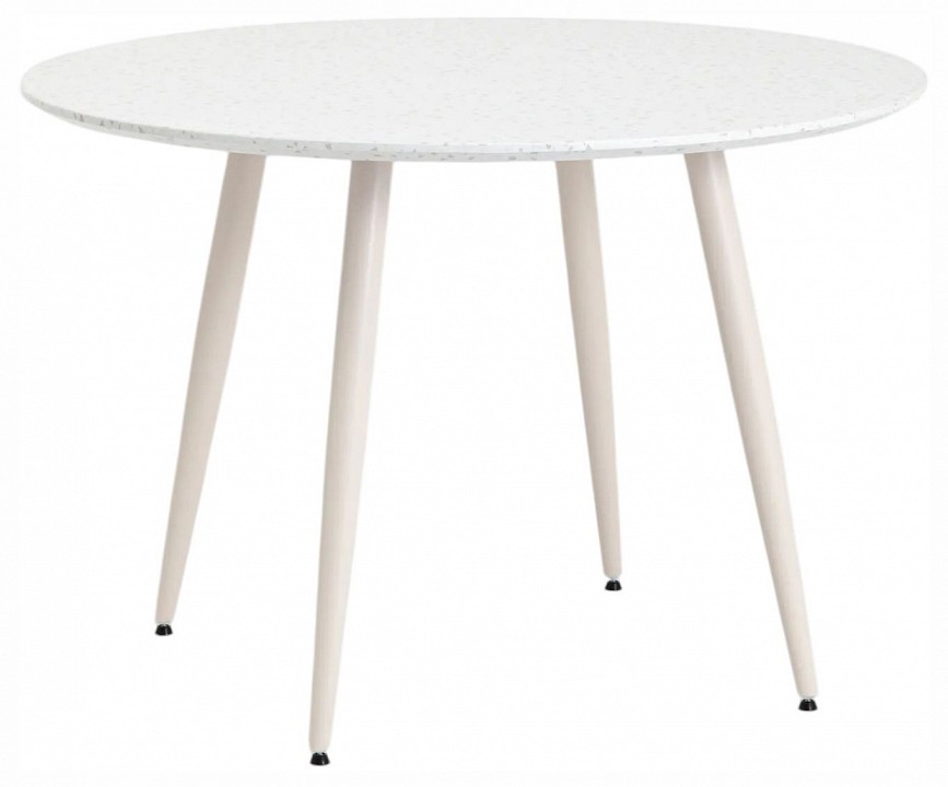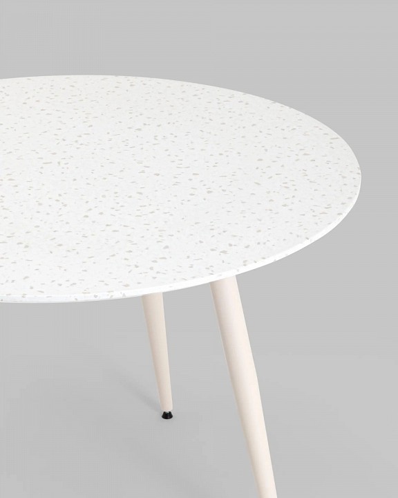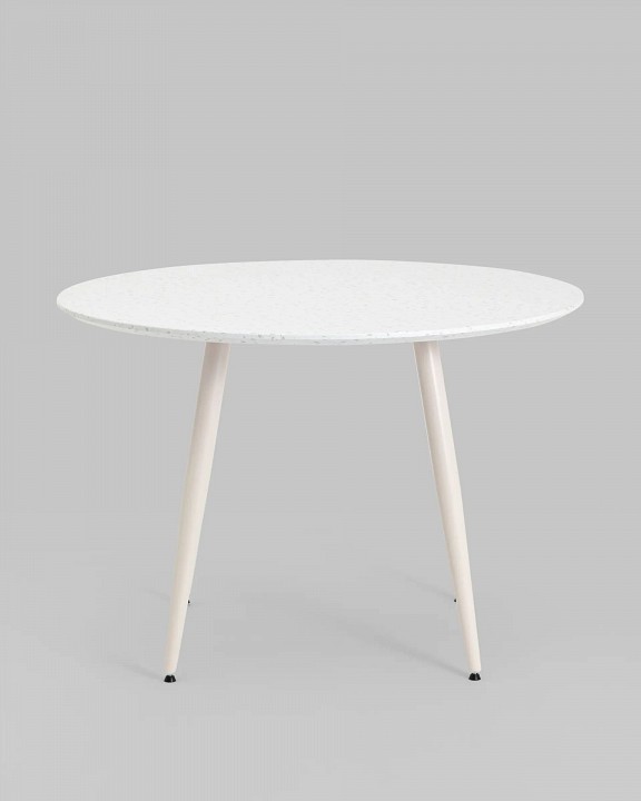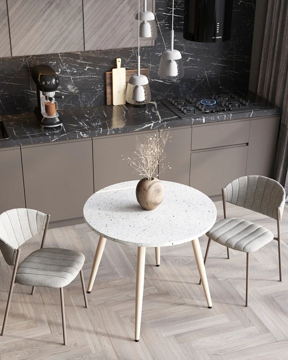 Дополнительные параметры: Стильный обеденный стол, который идеально дополнит вашу кухню, гостиную или террасу. Его ножки из металла обеспечивают прочность и устойчивость. Лаконичная столешница из МДФ круглой формы, окрашенна в тераццо (мозаичный рисунок колотого камня, придающий поверхности дополнительный объем). Преимущества нераскладного кухонного стола включают в себя: компактный размер, который подходит для небольших помещений, стильный дизайн, который гармонично вписывается в любой интерьер, прочную конструкцию, способную выдерживать значительные нагрузки, легкую сборку, позволяющую быстро собрать стол, устойчивую конструкцию с 4 железными ножками на широкой основе. Стол в стиле минимализм — отличное решение для тех, кто ценит комфорт, стиль и практичность в одном предмете мебели.
