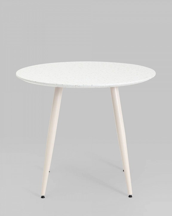 Дополнительные параметры: Стильный обеденный стол, который идеально дополнит вашу кухню, гостиную или террасу. Его ножки из металла обеспечивают прочность и устойчивость. Лаконичная столешница из МДФ круглой формы, окрашенна в тераццо (мозаичный рисунок колотого камня, придающий поверхности дополнительный объем). Преимущества нераскладного кухонного стола включают в себя: компактный размер, который подходит для небольших помещений, стильный дизайн, который гармонично вписывается в любой интерьер, прочную конструкцию, способную выдерживать значительные нагрузки, легкую сборку, позволяющую быстро собрать стол, устойчивую конструкцию с 4 железными ножками на широкой основе. Стол в стиле минимализм — отличное решение для тех, кто ценит комфорт, стиль и практичность в одном предмете мебели.