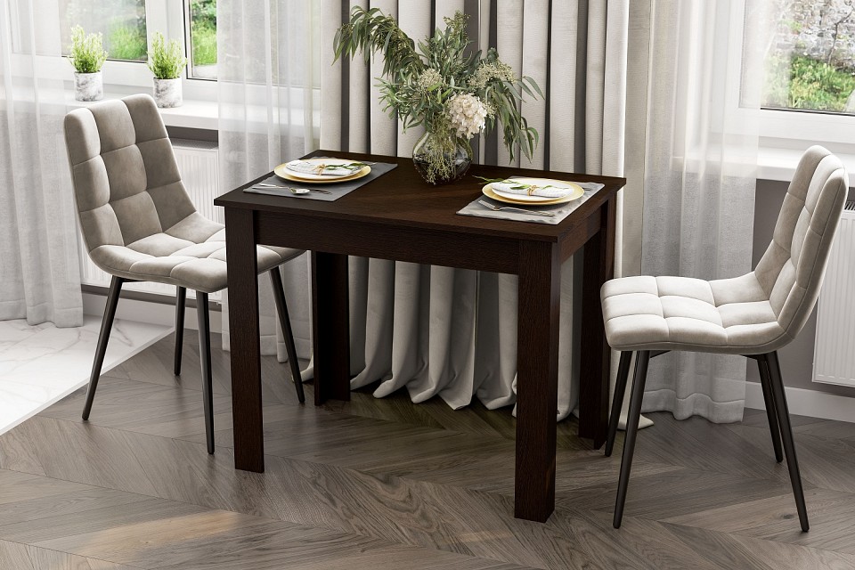 Яркая новинка, обеденный стол из серии СО 1, отличается небольшими габаритами, устойчивыми опорами, противоударной столешницей, которая также не боится влаги, и приятным декором на выбор. За счет универсального исполнения модель будет актуально смотреться в любом по стилю интерьере, от классического до ультрасовременного. А ее размеры позволят организовать обеденную зону для двоих даже в малогабаритке или квартире-студии. Особенности: материал ЛДСП, декор дуб венге, крепкие полые опоры, надежная столешница, которая не боится негативного влияния внешней среды.