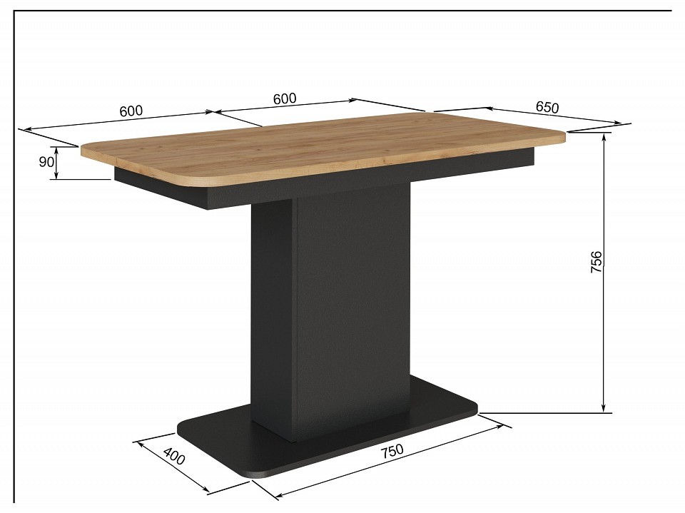 Размеры, мм: 1200, 1500x650x756
