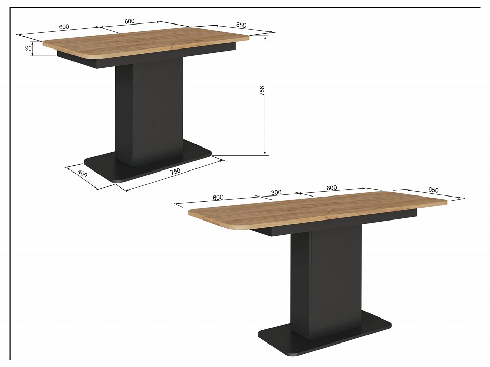 Цвет кромки: антрацит, дуб золотой крафт