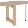 Стол-книжка СП-18 прекрасно дополнит интерьер небольшой кухни или гостиной, благодаря своей функциональности и компактным размерам. Модель в сложенном виде поможет организовать комфортное место для приема пищи или работы за ноутбуком, при этом ножка хранится в специальной нише в основании стола. При необходимости изделие быстро и без усилий можно разложить до полноценного обеденного стола, подняв одну половину столешницы и прикрутив к ней ножку. Хромированные опоры с возможностью регулировки по высоте обеспечивают надежность и устойчивость конструкции, а скругленные углы и овальная форма рабочей поверхности исключают травмоопасность. Ширина столешницы в разложенном состоянии — 1348 мм, в сложенном — 690 мм. Обращаем внимание! У стола опускается только одна половина и его нельзя сложить в узкую тумбу. Материал: ЛДСП 16 мм, кромка ПВХ 0,4 мм. Материал опор: металл. Максимальная нагрузка: 20 кг.