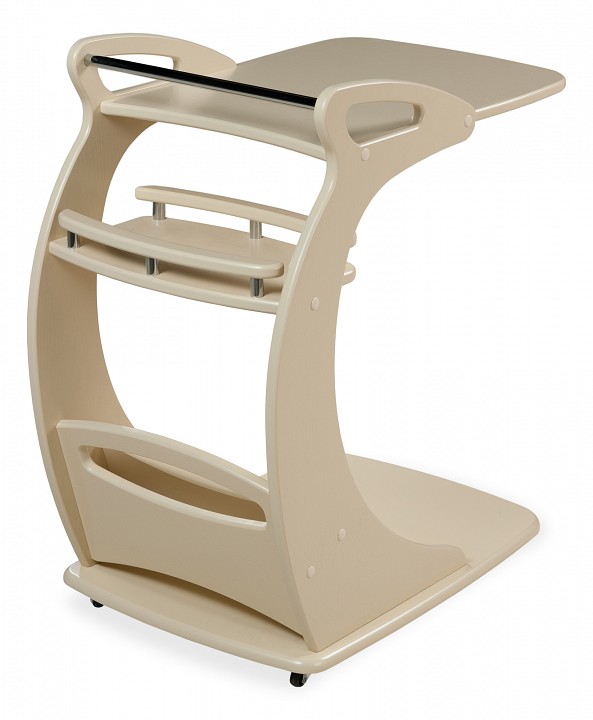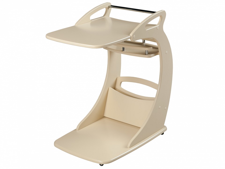 Необычный подкатной столик Фаворит, позволяющий всегда иметь под рукой необходимые во время отдыха вещи. Состоит из столешницы и двух полок разных размеров и форм. Столик на маленьких поворотных колесиках, что делает его перемещение по комнате легким и удобным.