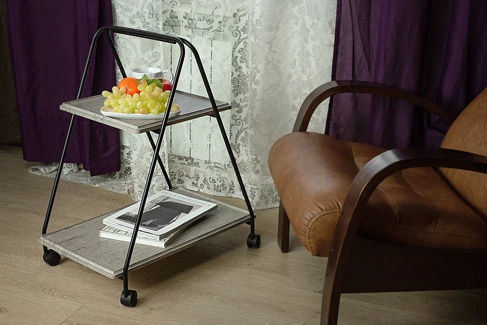 Универсальный сервировочный столик Милн обладает лаконичным дизайном, который подойдёт под современный интерьер квартиры или дома. Деревянные столешницы из МДФ качественно обработаны и покрыты пленкой, а каркас изделия выполнен из металлических трубок 12мм. Съемный квадратный поднос оснащён фиксаторами антискольжения, что исключает возможность опрокидывания и соскальзывания. Модель на колёсиках легко перемещать даже в небольшом пространстве. Многофункциональный стол можно использовать как приставной, кофейный, журнальный или книжный.