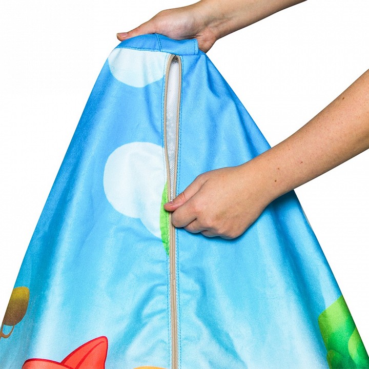 Данное кресло-мешок состоит из двух чехлов: внешний легко снимается и стирается в стиральной машине, и внутренний чехол из спанбонда. Внешний чехол сшит из 4 клиньев, на каждом из которых изображен персонаж мультфильма. Внутренний чехол наполнен гранулами пенополистирола. Гранулы, диаметром примерно 3 мм, позволяют сохранять заявленный объем товара в несколько раз дольше. Отверстия (люверсы) для отвода воздуха, исключают разрыв ткани при ‘плюханьи’ на кресло. Удобная ручка позволяет без труда переносить кресло даже детям.