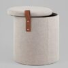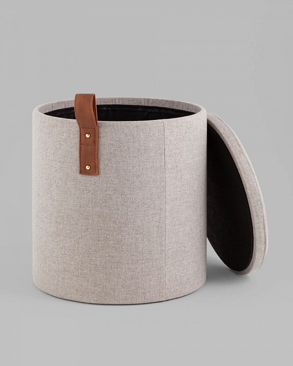 Мягкий пуф с ящиком станет незаменимым украшением интерьера. Он не только удобный, но и функциональный. Крышка пуфика полностью съемная. Компактный и вместительный, такой пуфик наполнит пространство особым уютом и теплом. Подойдет для любого интерьера — как в классическом стиле, так и в современном. Мягкая обивка выполнена из рогожки — высокопрочный, устойчивый к истиранию и простой в уходе материал, отлично сочетается со вставками из дерева. Прочный каркас из фанеры не утяжеляет изделие и выдерживает нагрузку до 150 кг. Небольшие подпятники в основании пуфа защищают напольные покрытия от царапин и предотвращают скольжение.