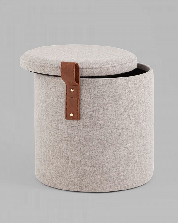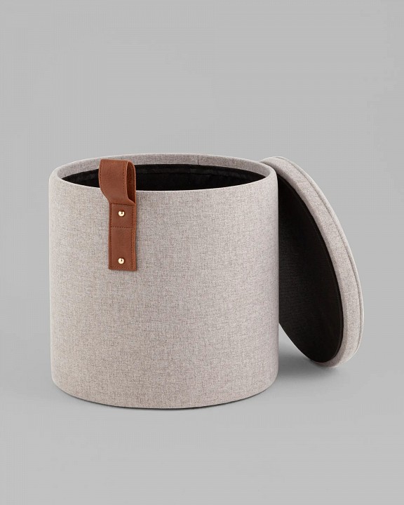 Мягкий пуф с ящиком станет незаменимым украшением интерьера. Он не только удобный, но и функциональный. Крышка пуфика полностью съемная. Компактный и вместительный, такой пуфик наполнит пространство особым уютом и теплом. Подойдет для любого интерьера — как в классическом стиле, так и в современном. Мягкая обивка выполнена из рогожки — высокопрочный, устойчивый к истиранию и простой в уходе материал, отлично сочетается со вставками из дерева. Прочный каркас из фанеры не утяжеляет изделие и выдерживает нагрузку до 150 кг. Небольшие подпятники в основании пуфа защищают напольные покрытия от царапин и предотвращают скольжение.