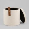 Мягкий пуф с ящиком станет незаменимым украшением интерьера. Он не только удобный, но и функциональный. Крышка пуфика полностью съемная. Компактный и вместительный, такой пуфик наполнит пространство особым уютом и теплом. Подойдет для любого интерьера — как в классическом стиле, так и в современном. Мягкая обивка выполнена из рогожки — высокопрочный, устойчивый к истиранию и простой в уходе материал, отлично сочетается со вставками из дерева. Прочный каркас из фанеры не утяжеляет изделие и выдерживает нагрузку до 150 кг. Небольшие подпятники в основании пуфа защищают напольные покрытия от царапин и предотвращают скольжение.