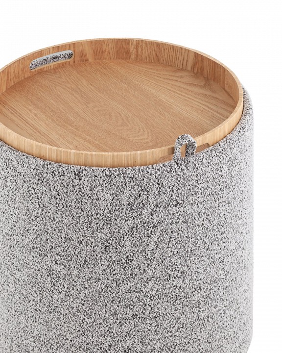 Мягкий пуф с ящиком станет незаменимым украшением интерьера. Он не только удобный, но и функциональный. Благодаря двухсторонней крышке, пуф можно трансформировать в журнальный столик. Столешница выполнена из светлого дерева с бортиками по краям и вырезными ручками для удобства, и безопасности при использовании. Крышка пуфика полностью съемная и при необходимости её можно использовать как поднос. Полезное дополнение — ящик для хранения различных мелочей, внутри обит тканью. Компактный и вместительный, такой пуфик наполнит пространство особым уютом и теплом. Подойдет для любого интерьера — как в классическом стиле, так и в современном. Мягкая обивка выполнена из рогожки — высокопрочный, устойчивый к истиранию и простой в уходе материал, отлично сочетается со вставками из дерева. Прочный каркас из фанеры не утяжеляет изделие и выдерживает нагрузку до 150 кг. Небольшие подпятники в основании пуфа защищают напольные покрытия от царапин и предотвращают скольжение.