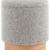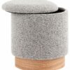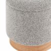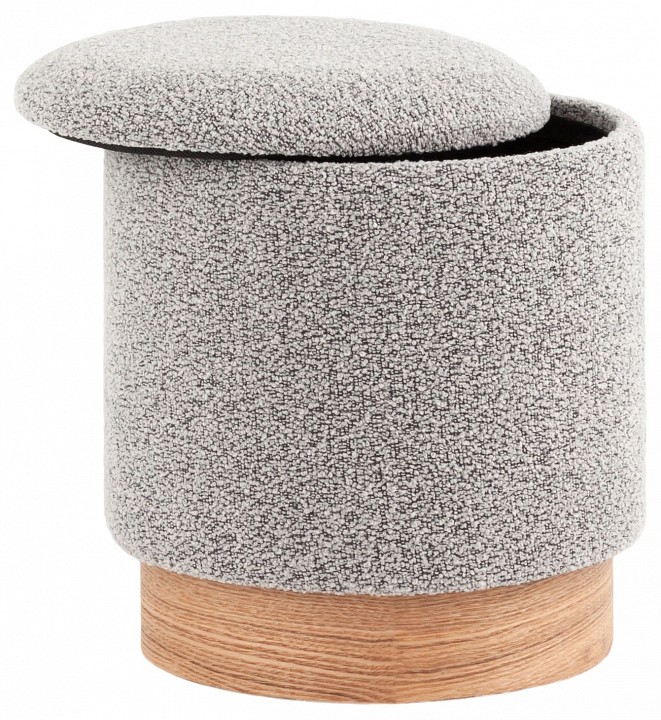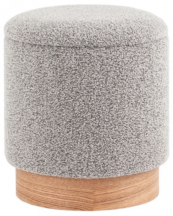 Лаконичный пуф в скандинавском стиле. Обивка выполнена из ткани букле — мягкий и приятный на ощупь материал. Прочный каркас из фанеры выдерживает на грузку до 150 кг. Основание из светлого массива дерева гармонично сочетается с обивкой. Пуф оснащен вместительным ящиком для хранения различный мелочей. Отличное функциональное дополнение для детской или спальни.